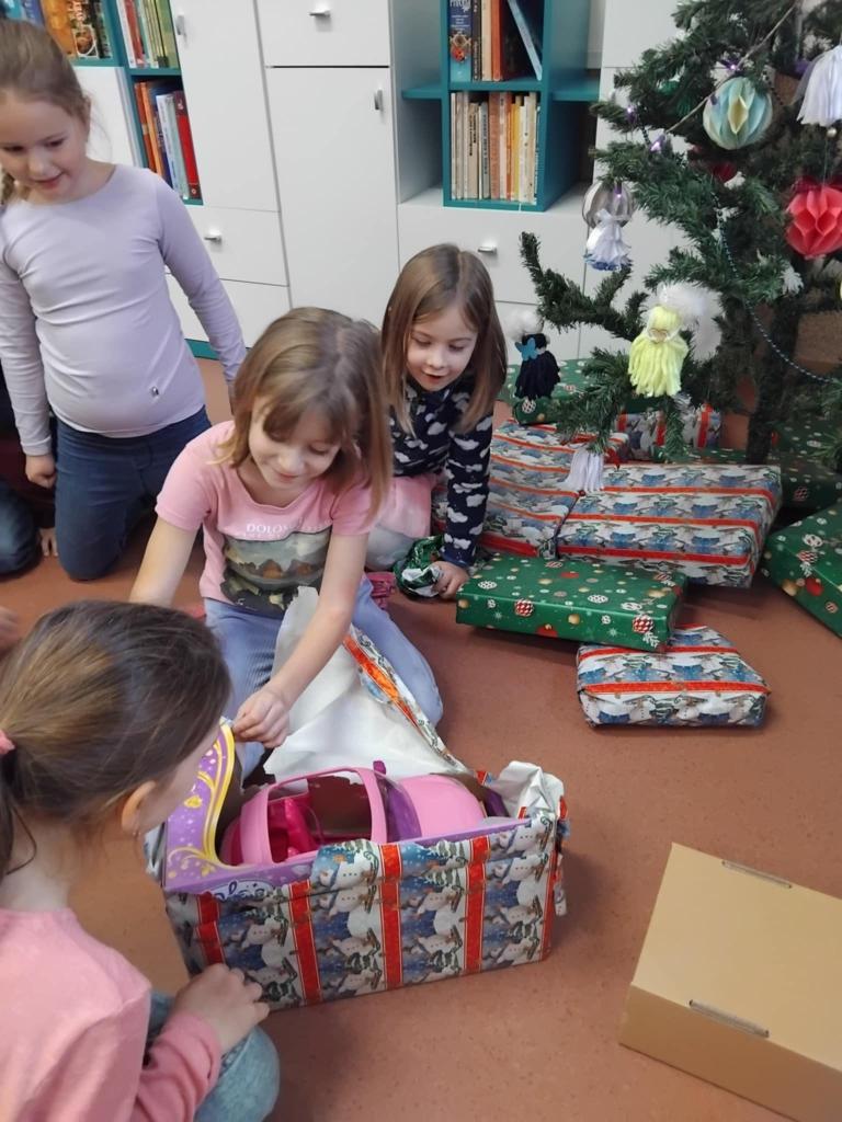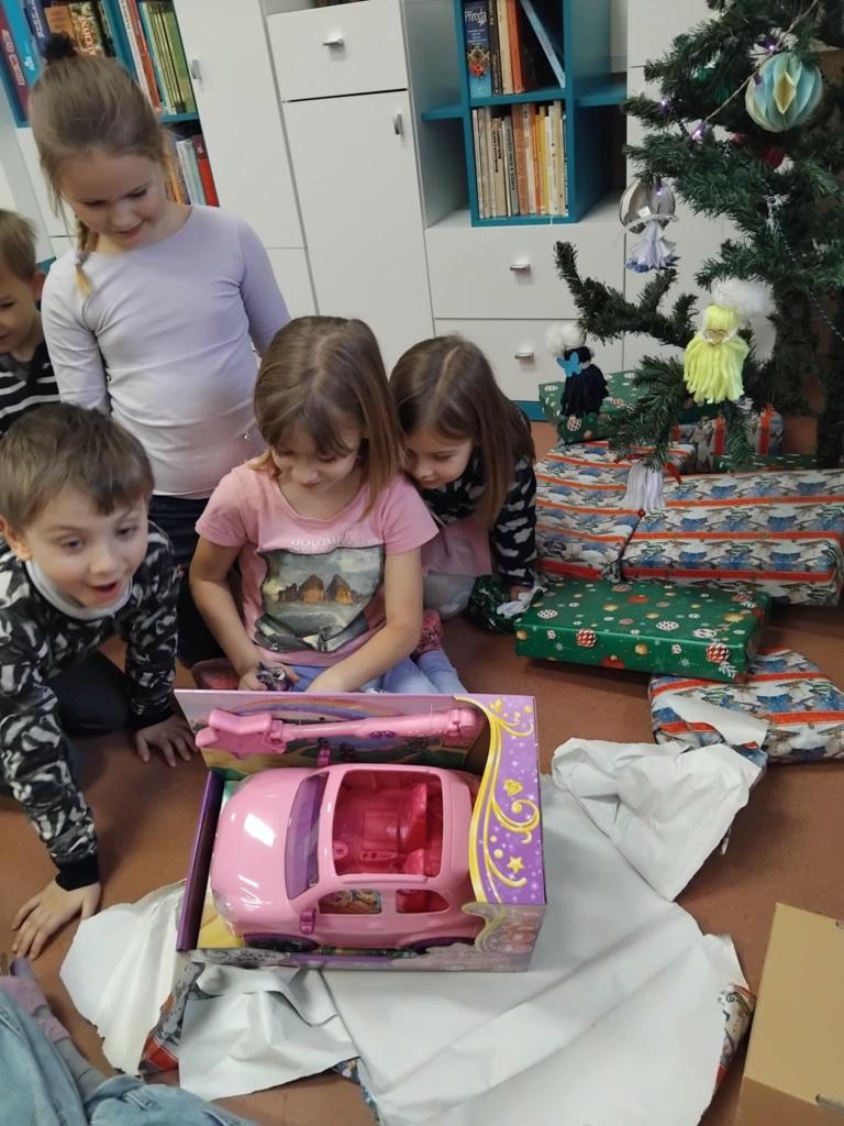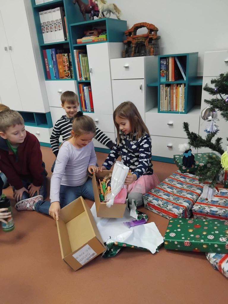 Tentokrát nebyla nadílka "chudá", jelikož skoro polovina družiny marodila, každý si mohl rozbalit jeden dárek. Překvapivě nejvíce děti nadchla veterinářská klinika, i když nám Ježíšek nadělil do zásoby 4 stavebnice, o kterou se neustále vedly boje :)